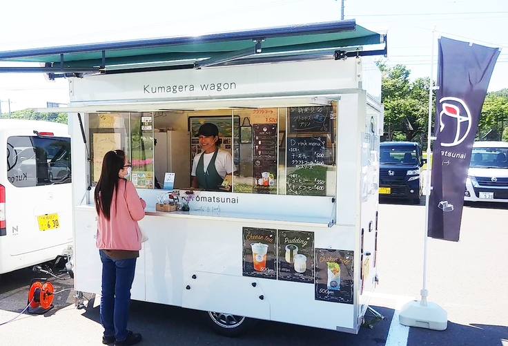 "物づくり" と "人" が大好きな私は,「ゲストにお料理やお菓子を提供できるキッチンが欲しい!」と思うようになり、町役場や人づてに空家を探すことにしました。すると「新しく購入したキッチンカーに乗ってみないか?」と言うお話をいただきました。考えてもいなかった展開でしたが、新しい経験をしてみる価値はあると思い、キッチンカーのオペレーションに携わることを決心しました。現在、キッチンカーは「道の駅くろまつない」で土日祝日営業。オリジナルレシピのプリンなど黒松内の美味しい素材を生かしたテイクアウトメニューを提供しています。
