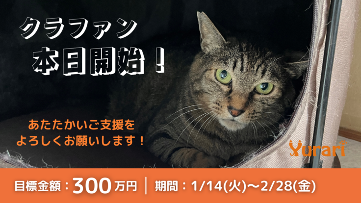 本日より、1年分のシェルター運営費と猫たちの医療費を集めるプロジェクトをスタートしました!