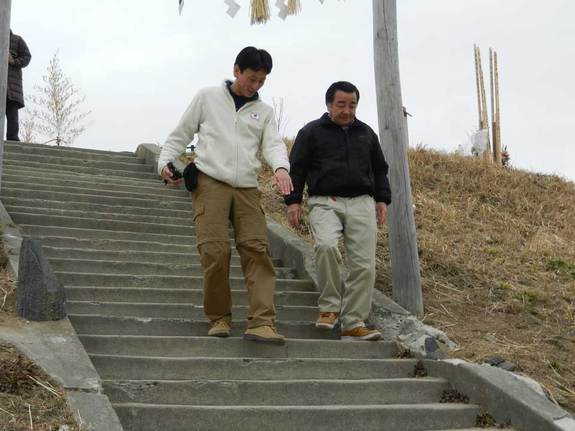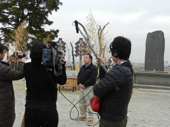 今日は助け合いジャパンの情報レンジャー網野さんが取材に来ました。また、それを取材するテレビ東京クルーの皆さんとともに閖上日和山に行ってきました。