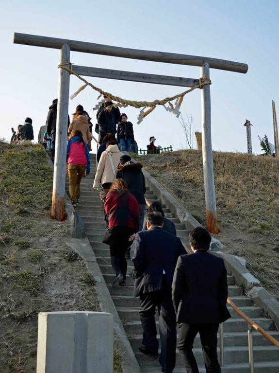 今日は土曜日ということもあって訪れる人が多かったです。業者さんがお社周りの作業をしていたので、打ち合わせで30分ほど日和山にいましたが、その間にバスが数台来ており、100人を超える人が来訪していました。