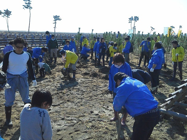 昨年11月27日、宮城県緑化推進委員会のご配慮により、岩沼市寺島海岸の植栽地に高舘圃場のマツ500本を移植しました。11月3日の仙台市荒浜海岸への1,500本に続いての移植となります。