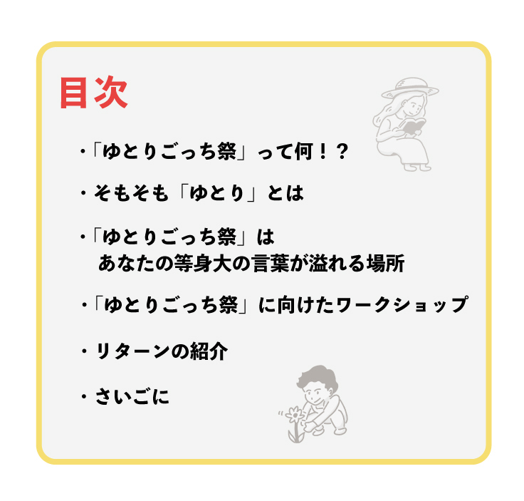 「ゆとりごっち」な人が集まるイベントの名前です。