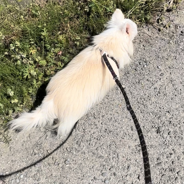 ゆった〜りなスピードですけどずっとしっぽフリフリ。楽しいみたいです🥹
