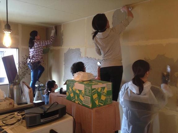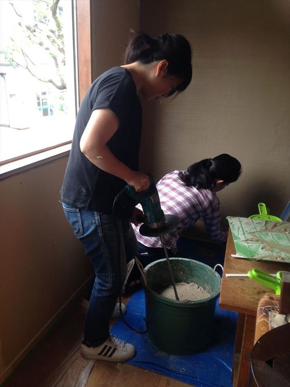 そして、二階の壁の珪藻土塗りを行いました。