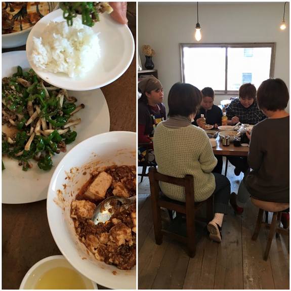 暁子シェフが、甜麺醤を使って、肉味噌と麻婆豆腐、野菜炒めの賄い料理を