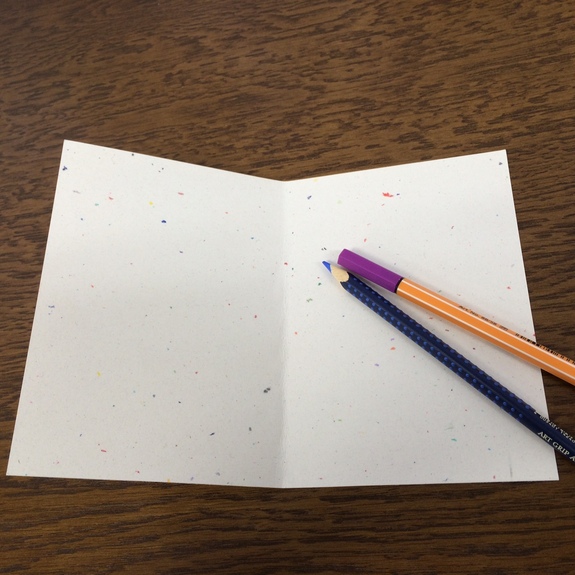 学生時代、修学旅行で広島を訪れた際、広島平和記念公園の「原爆の子の像」に捧げるためにクラスみんなで千羽鶴を折った経験がある方もいらっしゃるでしょう。実は、平和を祈って日本各地から世界から届けられた大量の折り鶴が、ゴミとして焼却処分されているという悲しい現実があるのです。そこで、折り鶴に込められた平和への願いを再生紙に甦らせたのが、折り鶴再生紙「平和おりひめ」です。糸やクリップなどをほどき、パルプにして抄き上げてできたこの再生紙は、随所にポツポツと色鮮やかな折り鶴の跡が見られるのが特徴です。