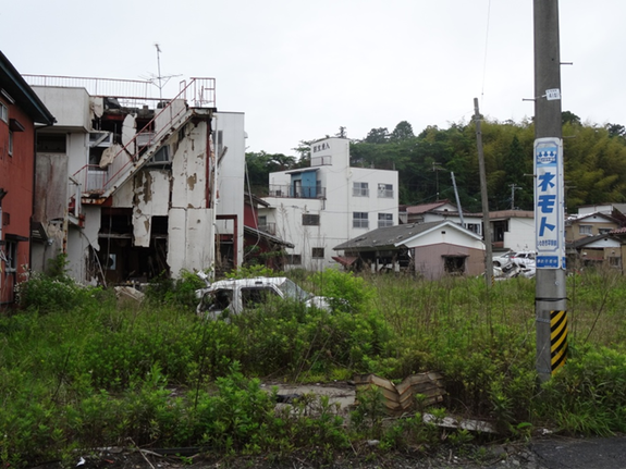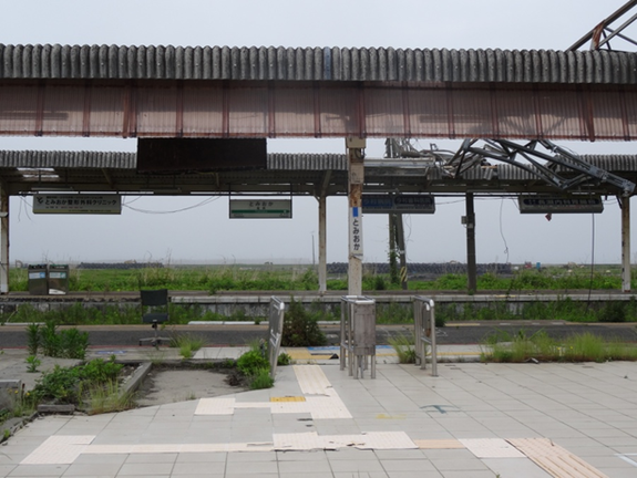 (2014年6月11日 震災から3年3カ月たっても、富岡駅は津波にのみこまれたまま)