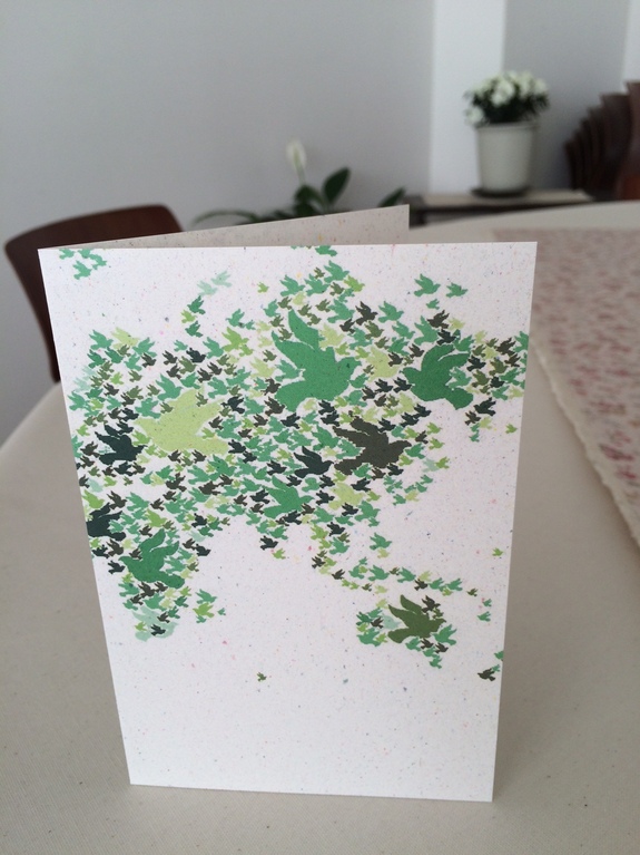 皆さまからいただいたご支援のおかげで、「千羽鶴再生紙カード」が完成しました!さっそく、皆さまに郵送にて発送しました。