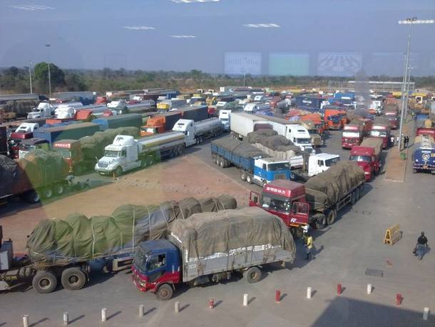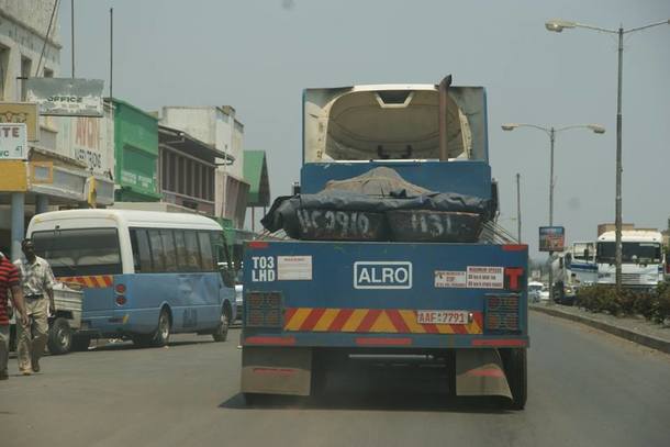 街には写真のようなトラックが沢山走っています。もちろん積荷は銅です。こうして国境を越え,輸出されていきます。一部は日本にも輸入されています。