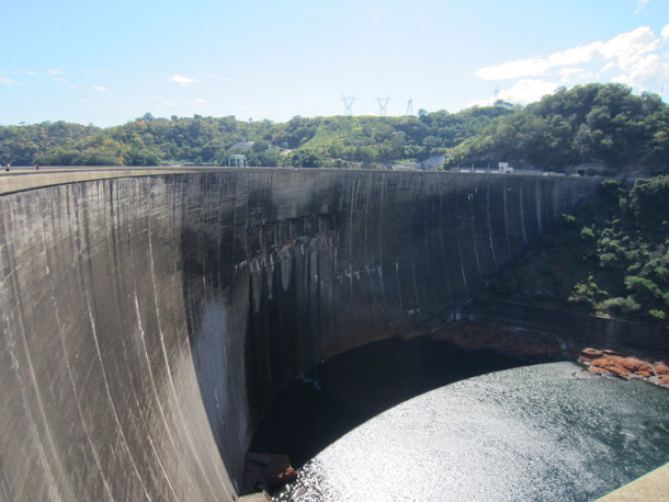 ビクトリアの滝を流れた水は,世界有数の人造湖,カリバ湖に至ります。カリバ湖を支えるカリバ・ダム発電所は,近年,雨量が減り,ダムの水位も低くなったことから,電力不足で,停電も多いようです。