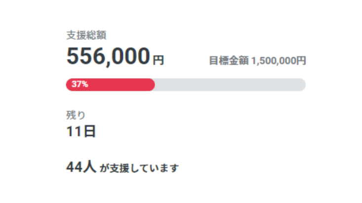 本日まで44人の方にご支援頂き、支援総額556,000円となりました。