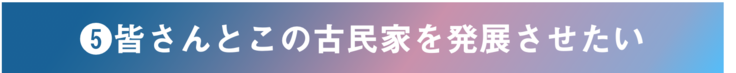 ネクストゴールでいただいたご支援金については、草刈り伐採した庭をパワーショベルを入れて動かしたりや古民家の2階の帆布の修理のための費用として大切に活用させていただきます。