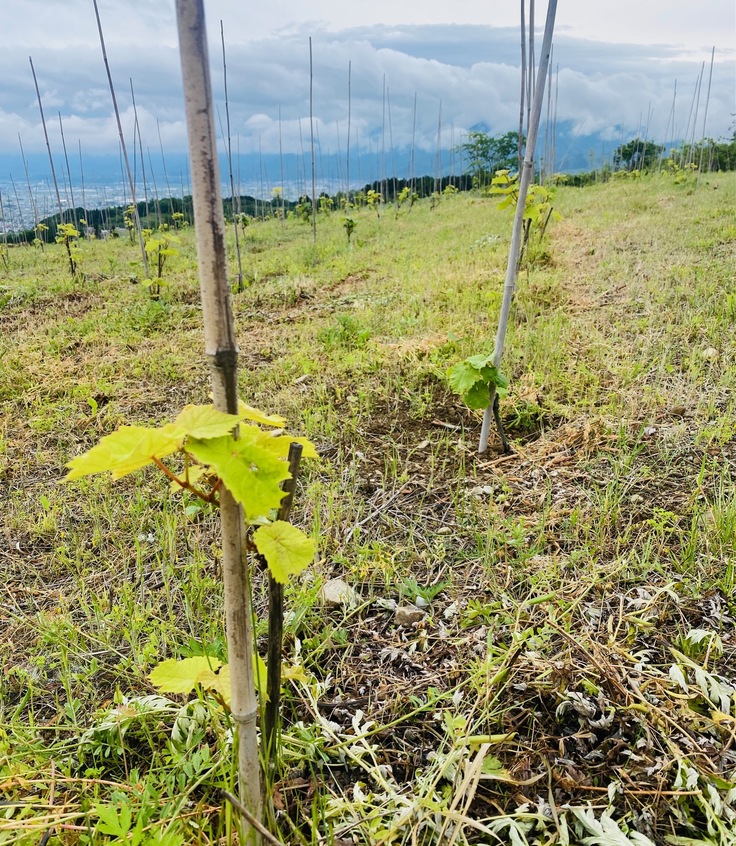 絶景ぶどう畑のご支援、ほんとうにありがとうございます。おかげさまで苗も写真のように順調に成長し、徐々に美しい畑に成長しております。これもご支援のお力のおかげと、あらためてお礼申し上げます。