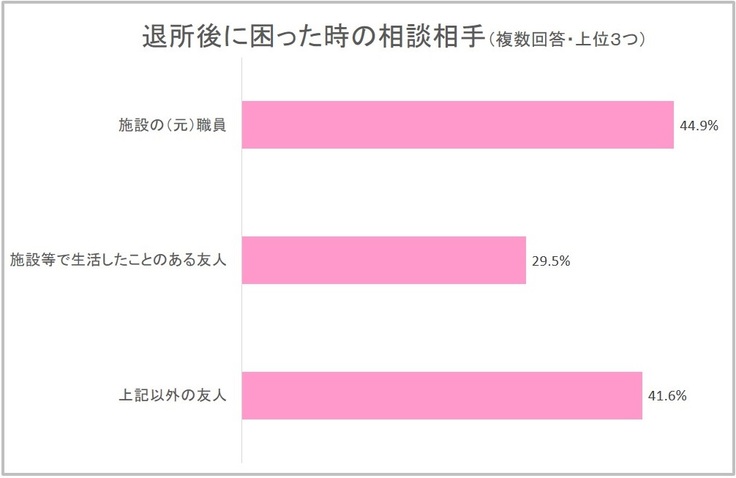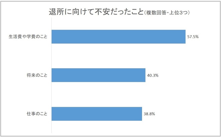 児童養護施設や里親から自立する前に、半数以上の若者が「生活費や学費のこと」を不安に感じていました。