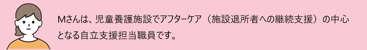 そのため、各施設では「自立支援担当職員」という専任の職員を中心に職員が一丸となり、入所中から退所後まで、自立に向けて一貫した支援に取り組んでいます。