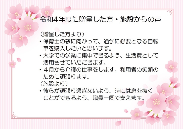一人あたり2万円と金額は決して多くはありませんが、「あなたの新生活を応援している大人がたくさんいる」ことを伝えたい。