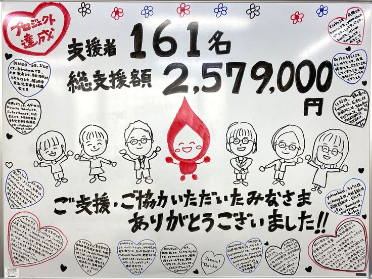 寄付者の皆さま、プロジェクトを広めることに協力いただいた皆さまに、心より感謝申し上げます。