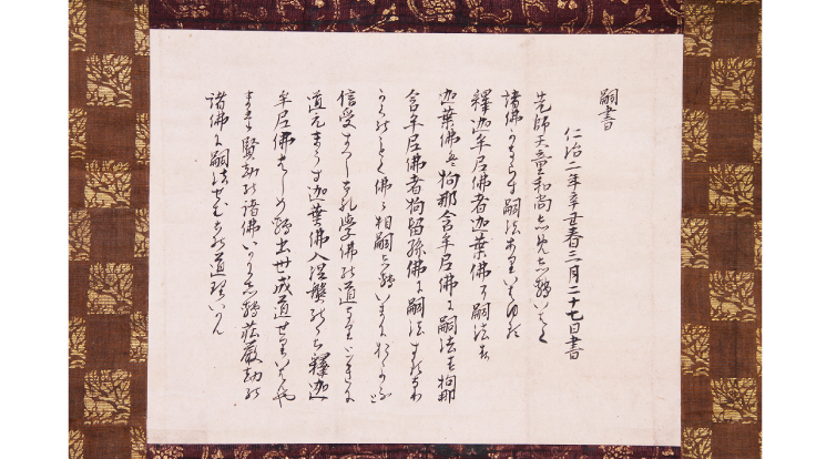 真の仏道を追求された道元は、釈迦牟尼から真実の仏道が代々伝承されることを証明する「嗣書」を非常に重要視されていました。天童山において釈迦牟尼から伝わる「嗣書」に初めて遭遇した時の感動が、今回草案本レプリカと共に公開される真筆「正法眼蔵嗣書」に詳述されており、読む者の心を打ちます。