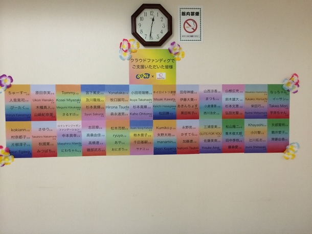 当日の会場内には、ご支援いただいた皆様のお名前を掲示させていただきました!