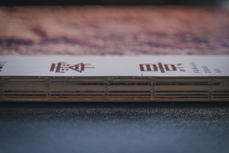 表紙のタイトルは光沢のある箔押し(ホットスタンプ)で、朝日の角度によって赤土が煌めきを変えるようにデザインが施されています。