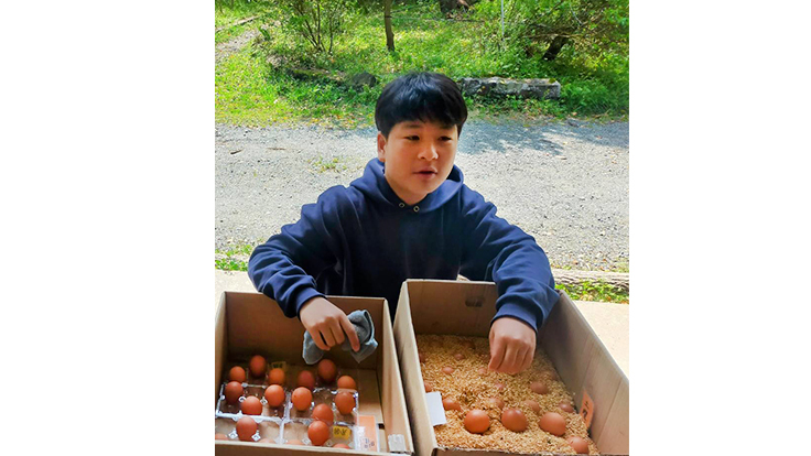 昨年からスタートした養鶏プロジェクトでは、中学生メンバーを中心に飼料の配合の研究や環境整備に取り組み、現在はとてもおいしい放し飼い有精卵を販売しています。お客様からの喜びの声も多数頂いており、お仕事の成り立ちや仕組みを一から学んでいます。