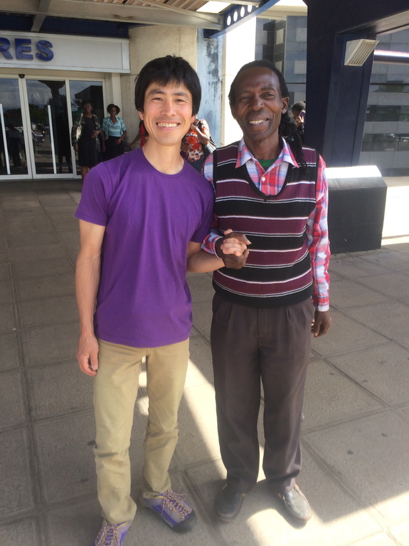 日本からタイ、エチオピア、ザンビアを経由してジンバブエの首都ハラレに着きました。初日から1日2H〜6Hほぼ毎日ムビラと歌を習いました。彼の音楽はCDで聴いていた通り素晴らしく、深く、切なく、優しい音色でした。そして実際に会ってみると、フォワードさんは温厚で情熱的、ユーモラスでかなり天然の愛すべき人でした。日本で毎日の様に聴いていてもなかなか入ってこなかった歌が、一緒に歌うと自然に歌えて今まで出なかった声が出て来るのが不思議な感覚でした。心を合わせて歌っていると、懐かしさの様なものと何とも言えない喜びで涙が溢れて仕方のない事もありました。そんな時フォワードさんは、気づかないフリをして更に深い歌とムビラを弾いてくれるのでした。後から『君が涙している時、スピリットが来ているのがよくわかった。』と言っていました。ムビラは昔、ナレと呼ばれ、今のケータイと同じ様な物で、神様やスピリットと話したり、祈りを伝えるためのもの。又、ビラという儀式では、全ての曲に弾く理由と弾くべき時間帯がある事等を熱心に教えてくれました。乾期の筈でしたが雨の多い日々、ハラレの宿で殆ど毎日ムビラに時間を費やしていましたが、ある日、日本の政治的現状を僕が話した事から、フォワードさんが、神さまからのメッセージだと日本の平和の為の曲を作ってくれました。その曲を携えて1泊2日で聖地迄2人で祈りを捧げる旅をする事になりました。その日の夜、聖地の直ぐ側に住む親戚の家に泊めてもらいました。わらぶき、土壁の伝統的な家屋、土間のたき火でサザ(トウモロコシ粉を練った主食)をごちそうになりました。中学生くらいの女の子が料理、支度、後片付けの全てをし、お母さんは見守っているだけだった事に、しばし考えさせられました。その夜満点の星空を見上げると、天の川を流れ星がスーッと消えていきました。またたくまに日々は過ぎ、帰国の日。空港に向かう車の中、フォワードさんが運転してくれながら、『ムズィムワングー」という曲を2人で歌いました。僕の歌を彼は喜んでくれて、天に届く様な歌声で空港に着く迄ずっと歌っていました。その姿が今も心に深く残っています。アフリカンタイムやお金の問題等悩まさせられる事も多くありましたが、3週間という短い期間、喜怒哀楽を共にし、魂の通う日々を過ごして、ムビラの神様の様に思っていた人が、帰る頃にはかけがえのない親友に変わっていました。それがこの旅で一番の宝ものかもしれません。この旅が始まりで、また新たな道が続く気がしています。そして、少しずつでも、フォワードさんやジンバブエ、日本の人々に僕が頂いたものをお返し出来る様に精進しようと思います。自分の中に整理のつかない問題があり、ご報告が大変遅くなりました事を深くお詫び致します。また、このプロジェクトを支えて下さった全ての方に、心から感謝致します。ありがとうございました! Maitabasa!