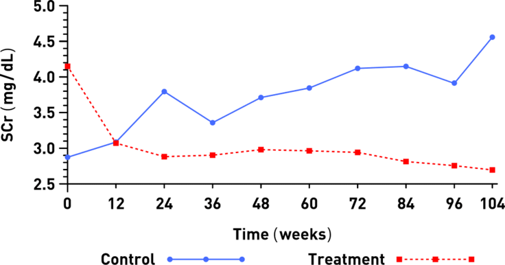 血中クレアチニン濃度および推定糸球体濾過率に関するアミノ酸/ペプチド複合体であるAB070597の探索的データおよび統計分析:腎機能が低下している5人の非ランダム化パイロット試験
