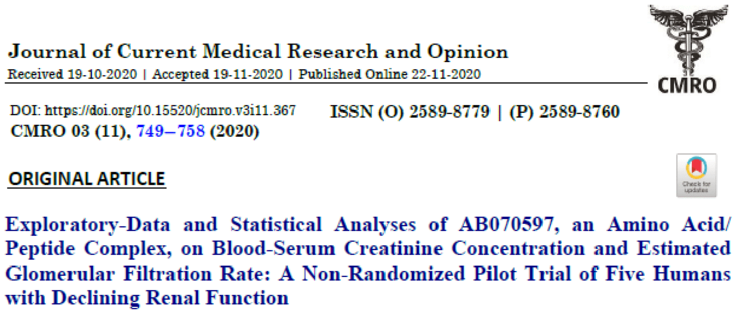 そのような中で米国にて発表された論文に「AB070597という成分を含むサプリメントが健康な腎機能を維持できる可能性」と記載されていたのを発見し調べたところ、以下のように大規模な臨床試験が行われエビデンスが出されていました。