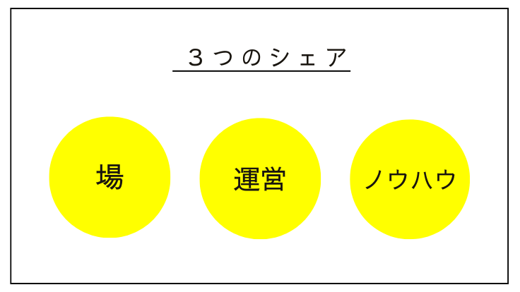 棚をお貸しすることで「場」のシェアができ、棚を借りた方がお店番をするので「運営」のシェアもなされます。また、一つの棚を通じて本を届ける取り組みを皆で学びながらやっていくので自然と「ノウハウ」のシェアもされていくんです。