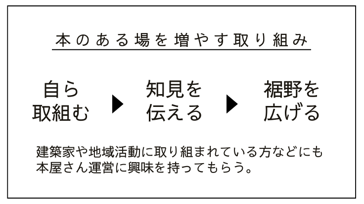 この取り組みで意識したのは、元々「本屋さんをやってみたい」と思われている方はもちろん、それまで本屋づくりに関心がなかった方にも取り組みに興味をもっていただき、新たに取り組んでもらうきっかけにしたいということでした。