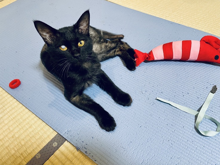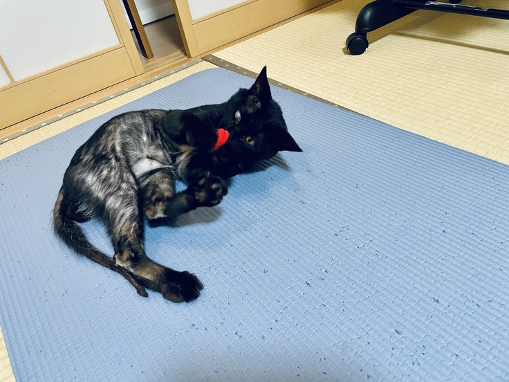ハルくんの短い手では届かず、私に鳴いて「とってくれ」とお願いしてきます。