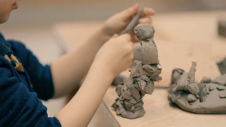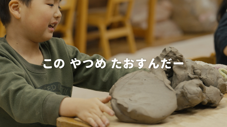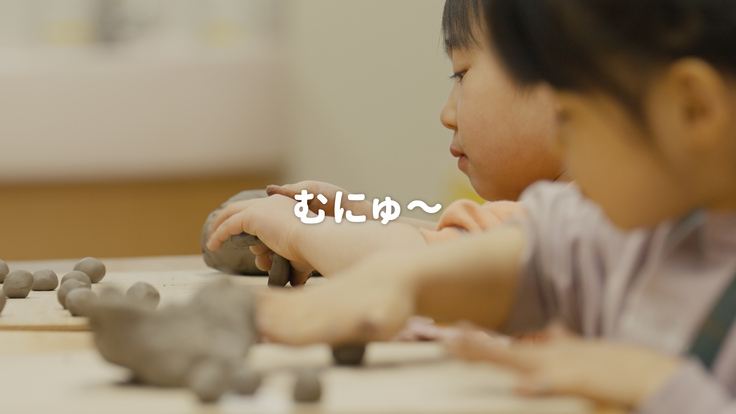 粘土と向き合う子どもたちの姿を捉え、創造プロセスにおける思考や言語と、身体のインタラクションを映像として記録し、その豊かな創造性を映像作品として昇華させました。