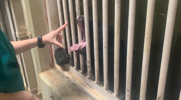 最近では日常的な体調管理のためにハズバンダリートレーニングにも取り組んでおり、前肢の甲から採血をしたり、口腔内のチェックなどもできるようになりました。