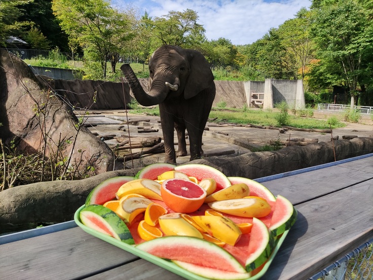 6月に21歳の誕生日を迎えたアフリカゾウのメス”マオ”に、お祝いとして好物の果物をプレゼントするリターンコースをご用意したところ、17名の方々から25件のご支援をいただきました。