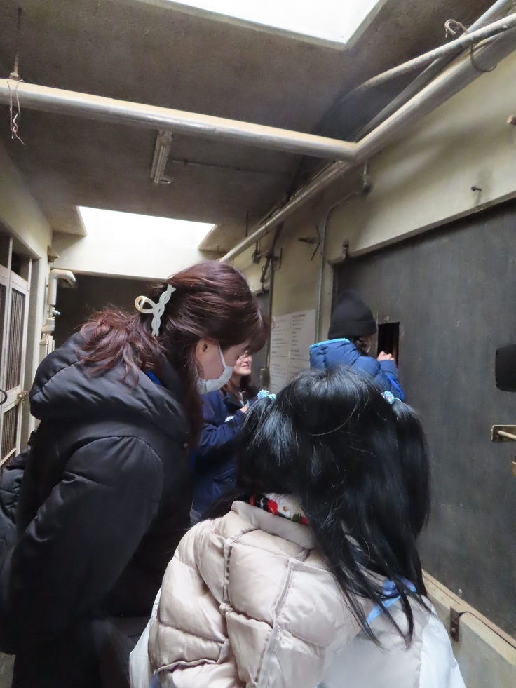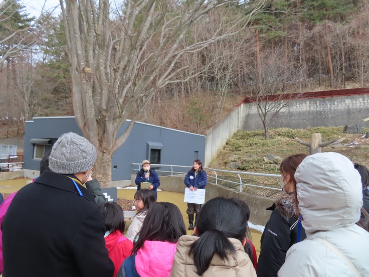 当日は、現在冬眠中のツキノワグマの獣舎からスタート。