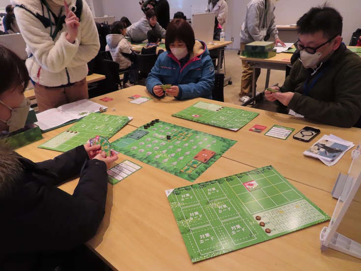 事前学習、ツキノワグマの観察、標本を使った振り返りを経て、いよいよシリアスボードゲーム「クマと僕らの物語」に挑戦です。