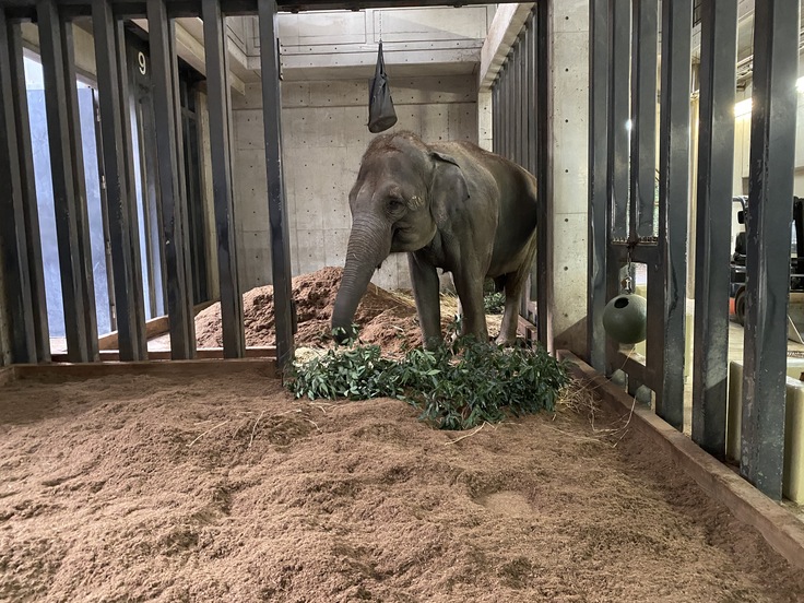 寝室のコンクリートの床は硬く、冷たいため、上におが粉(材木を作るときにでる木のくず)を敷き詰める工夫をしています。柔らかく暖かい床になった結果、インドゾウの足の疾患が良くなり、さらに夜間は横になってぐっすり眠るようになりました。