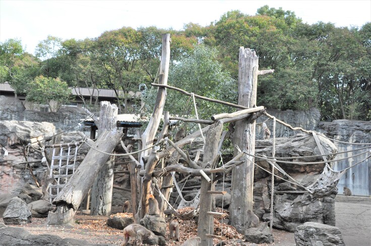 ニホンザルの展示場には止まり木やロープをふんだんに張り巡らせる改修をしました。