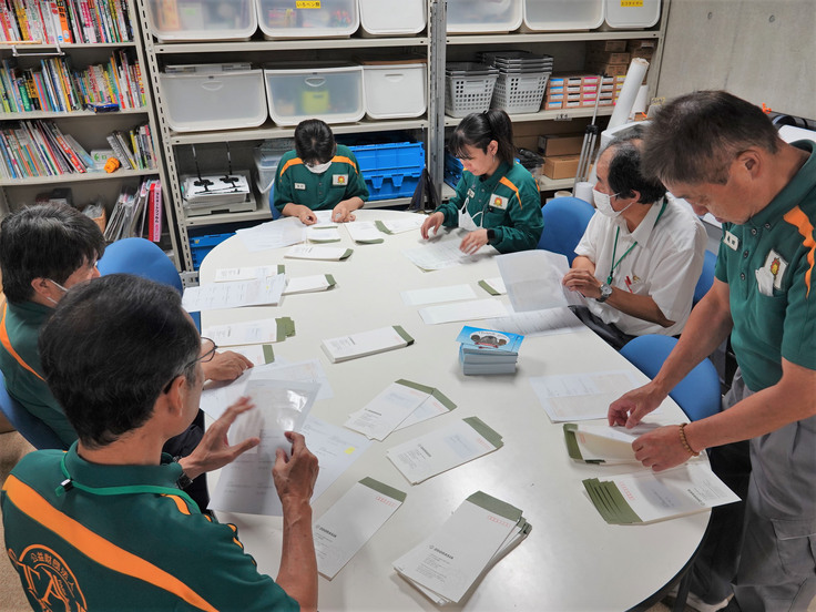 たくさんの方にご支援いただきましたので、職員みんなで袋詰めを行いました。