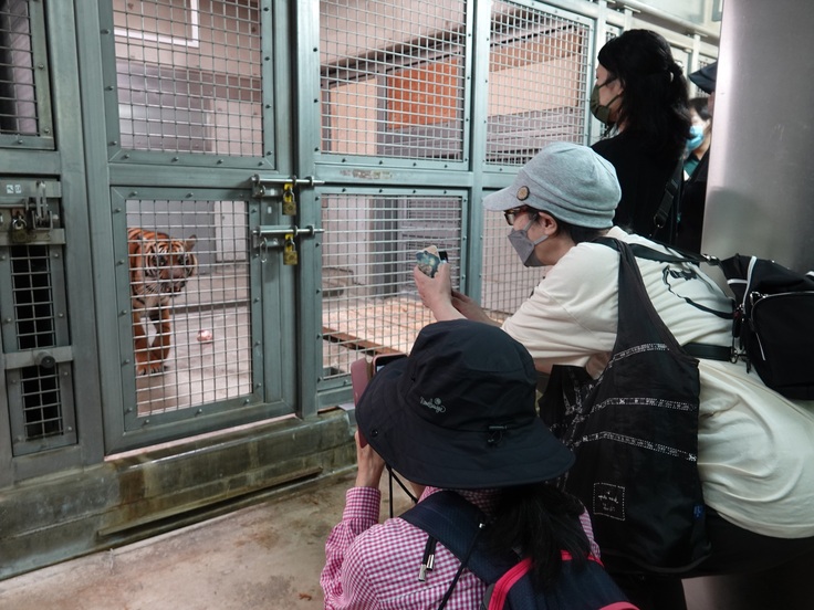 開園前ということで忙しいスケジュールでしたが、開園前の飼育員のお仕事を体験していただき、普段は入れない獣舎の中や動物たちを間近で観察していただけたのではないかと思います。