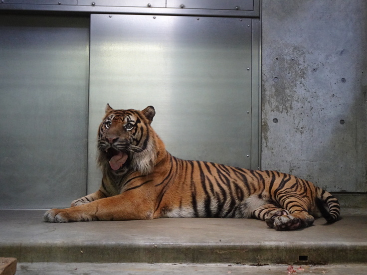 トラたちに挨拶した後は、スマトラトラの展示場の中へ!