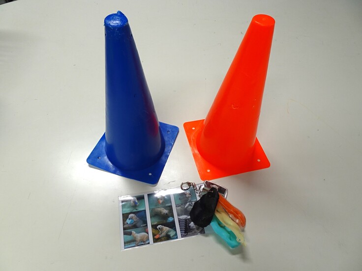 ホッキョクグマのゴーゴやイッちゃんが遊んだ遊具で飼育員が作ったキーホルダーで、ホッキョクグマの小さなフォトホルダーもついています。