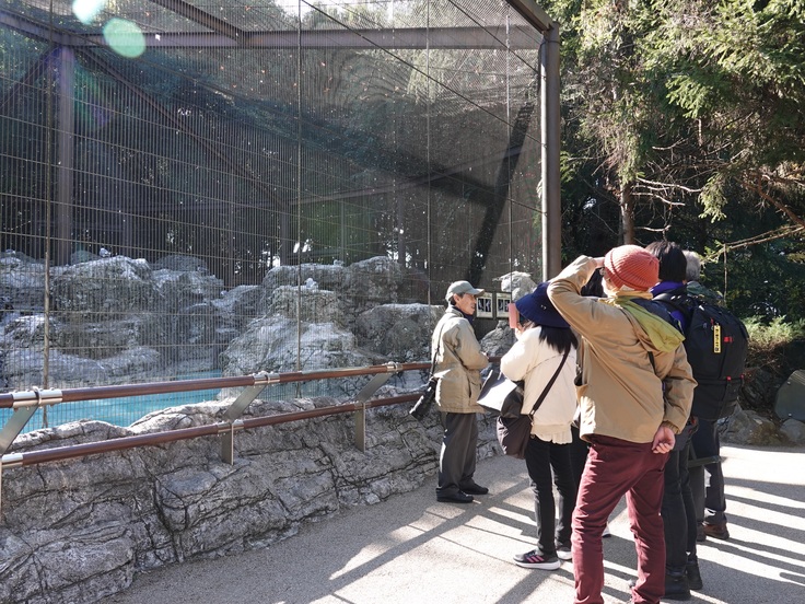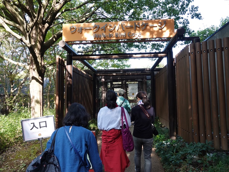 ユーラシアカワウソの飼育員のとっておきタイムにみんなで参加した後は、ウォークインバードケージへ。
