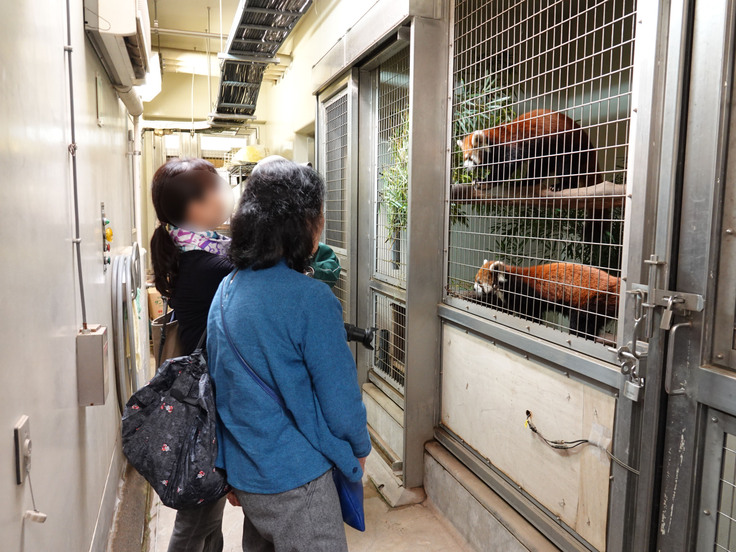 バックヤードに入って、レッサーパンダの昨晩の食べ残しの竹を観察して、
