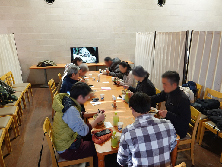 みなさま園長お勧めのサンマーメンや肉うどんを食べながら、園長のとっておき写真展でも展示していた、園長が撮影した動物の赤ちゃんのスライドを見ながら楽しく歓談されていました。