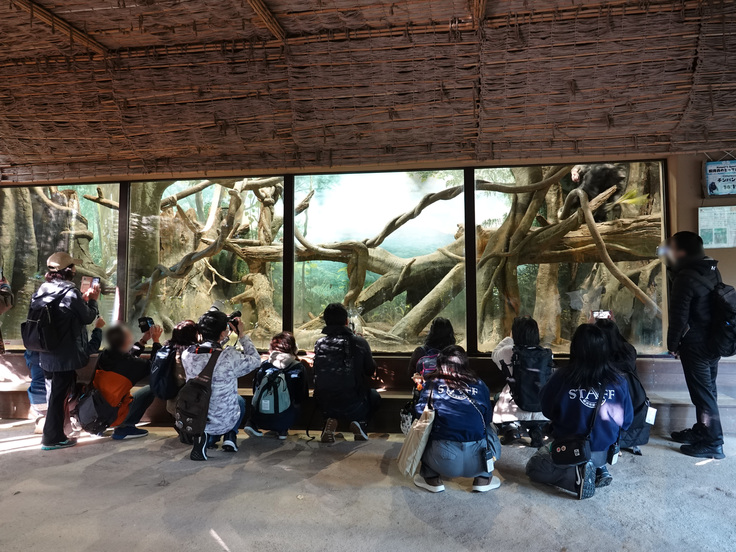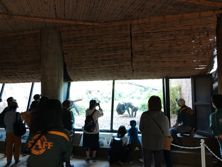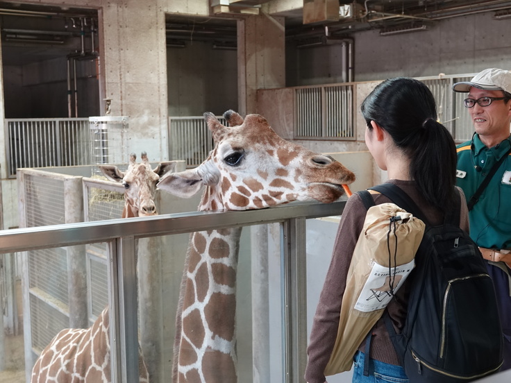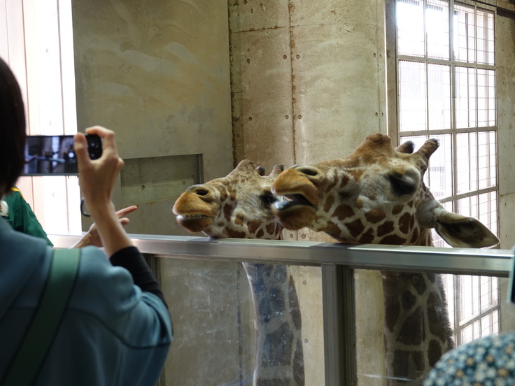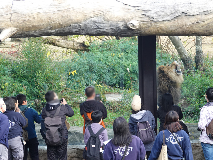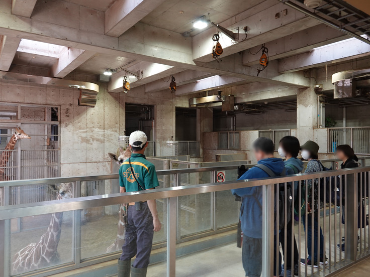 その後はアフリカのサバンナゾーンへ移動して動物を観察したり、動物が展示場へ移動するための通路のお話を聞いたり、
