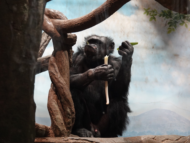 12月のツアーでは、長ネギをチンパンジーたちにプレゼントしました。