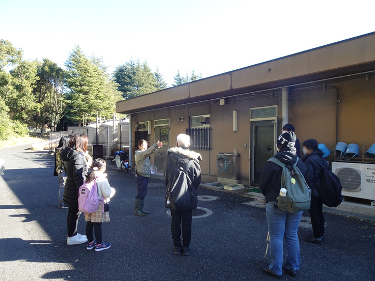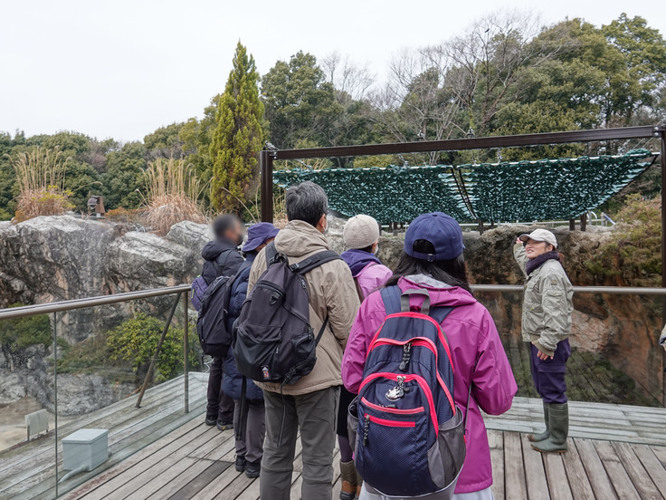 トレーニング体験後は、園路で飼育員のとっておきタイムに参加して、今回設置しました日よけやミストをご覧いただきました!