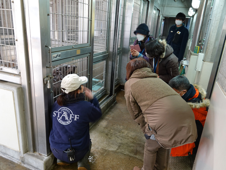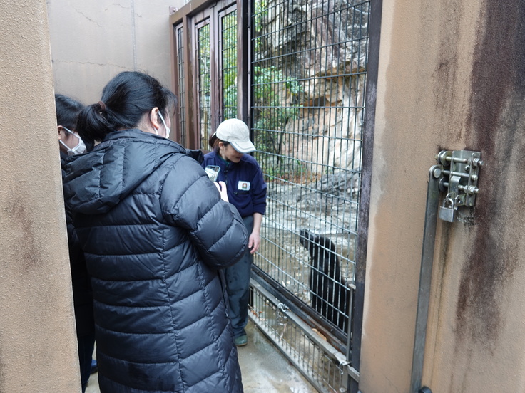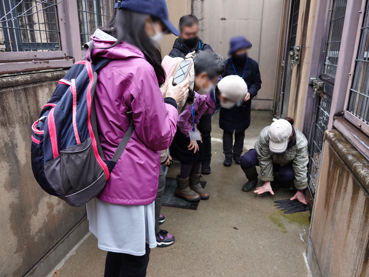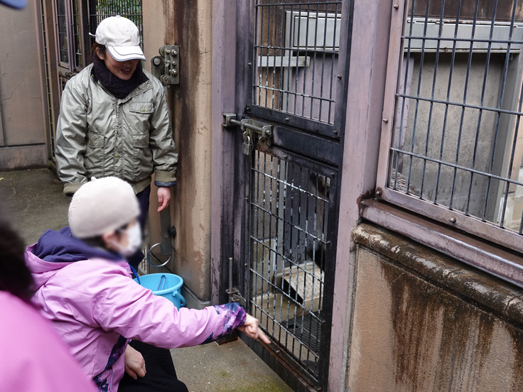 トレーニング体験中には、獣舎の様子が気になった展示場の個体もちょくちょく様子を見に来ていました(笑)