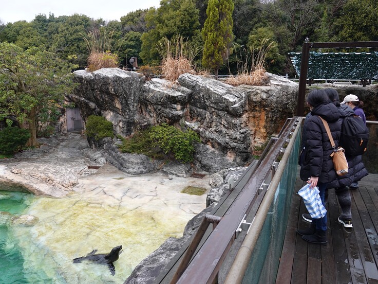 集合した後は、バックヤードを通りながらミナミアフリカオットセイ舎へ。
